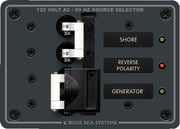 Features reverse polarity indicating LED, 2 double-pole AC main circuit breakers with lockout slide and 2 Green power available indicating LED's.<BR> <BR> <BR>Size : 5-1/4" W x 3-3/4" H <BR> Amps : 30